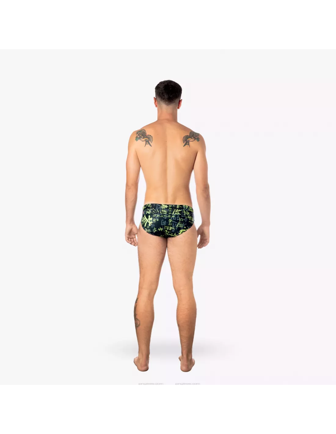 Codice prodotto: A21024TAIPEI men's briefs in Sidney Eco fabric, lined and with an 8 cm hip height. Sporty design with Japanese lettering in neon yellow for a unique and contemporary style.