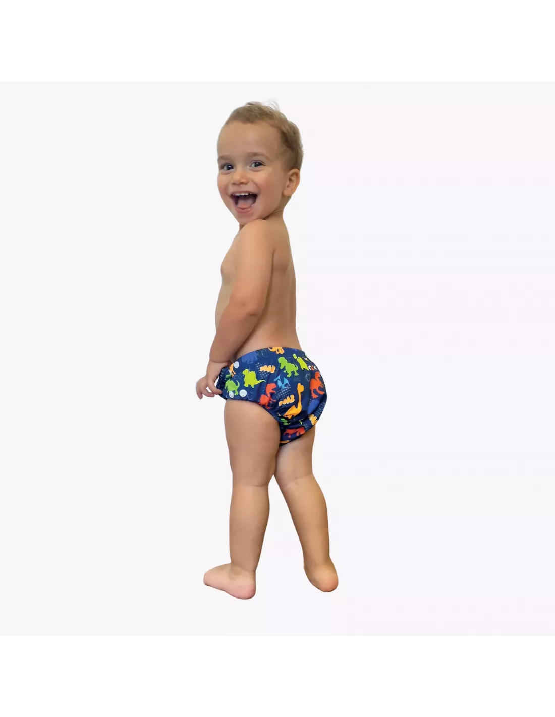 Code produit: A8000ALe maillot de bain couche Baby HUGS à imprimé dinosaure est confortable, sûr et ajustable grâce à ses boutons. Disponible en deux tailles (6-18 mois et 18-30 mois), il est idéal pour jouer à la plage ou à la piscine.