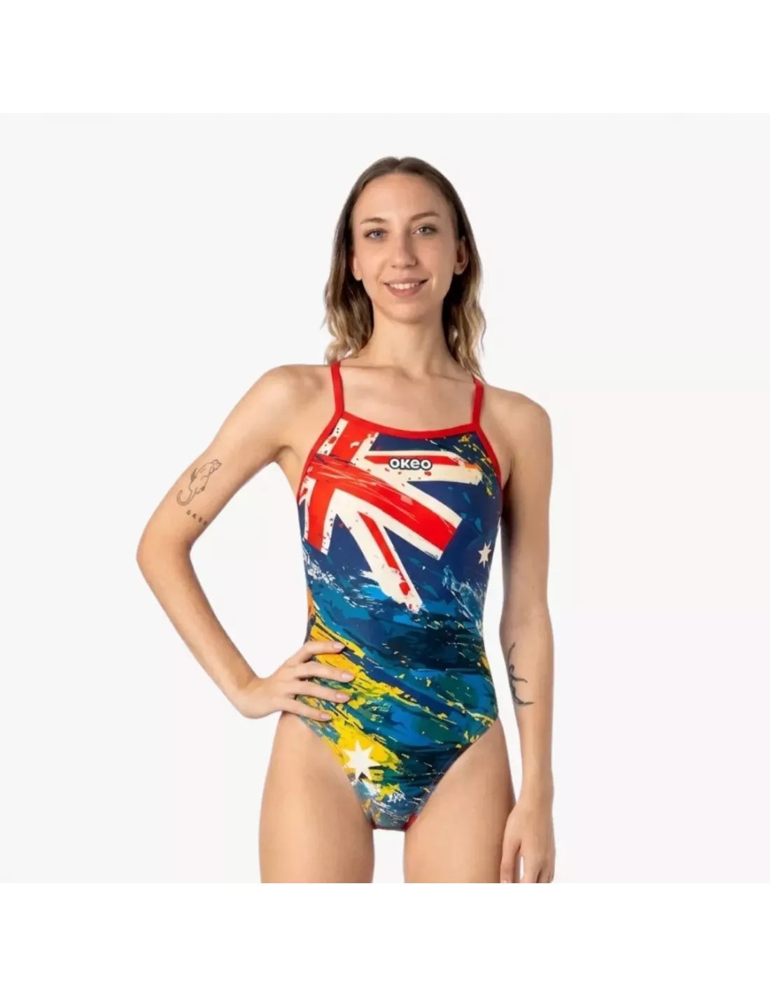 Illuminez vos baignades avec AUKLAND , le maillot de bain une pièce qui allie style et performance. Son imprimé d'inspiration australienne crée un look vibrant et dynamique, sublimé par les fines bretelles rouges qui apportent une touche à la fois sportive et féminine.