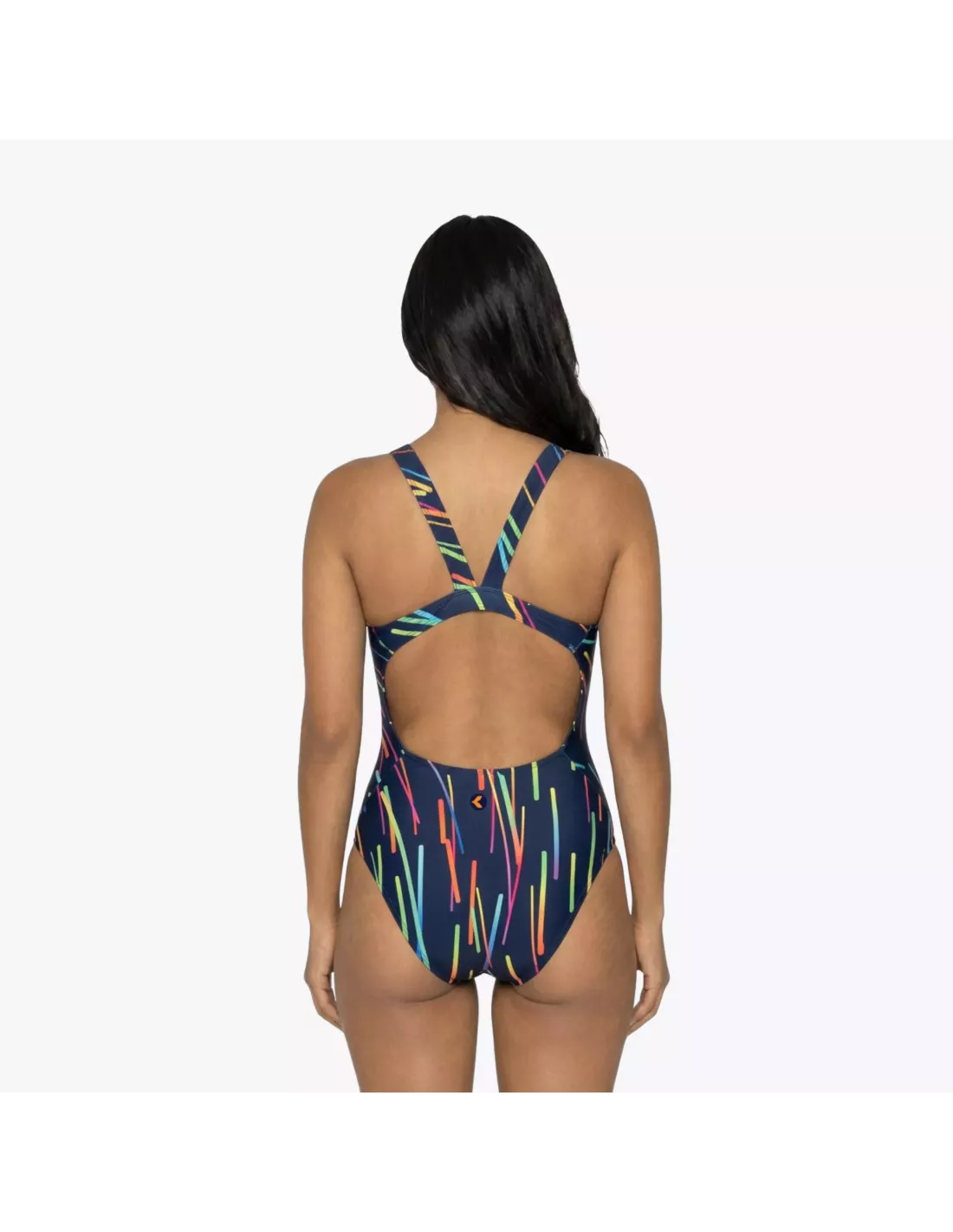 Coloré et audacieux comme les vagues du pôle Nord, ISLANDA est un maillot une-pièce conçu pour celles qui aiment s'entraîner avec énergie et style. Son motif à rayures multicolores sur fond bleu foncé crée un look dynamique et dynamique, parfait pour se démarquer à la piscine.