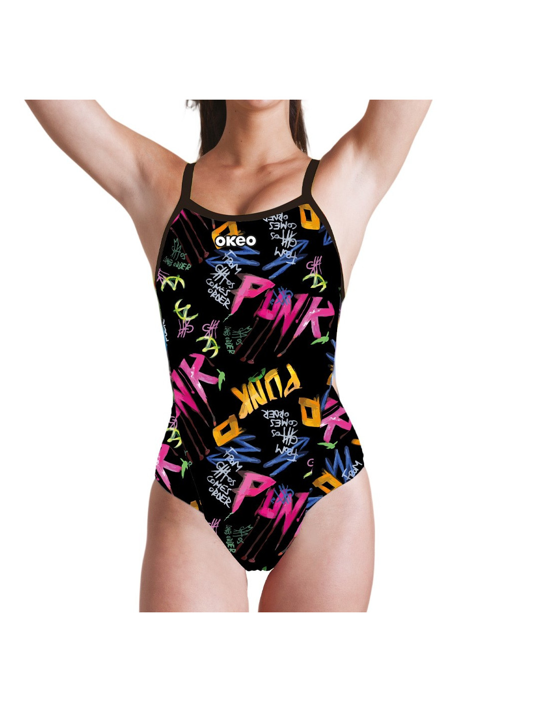 L' imprimé graffiti sur fond noir lui confère un look audacieux et original, tandis que les fines bretelles subliment la silhouette féminine sans sacrifier le confort. Un modèle d'entraînement conçu pour vous accompagner avec détermination et légèreté à chaque séance de natation.