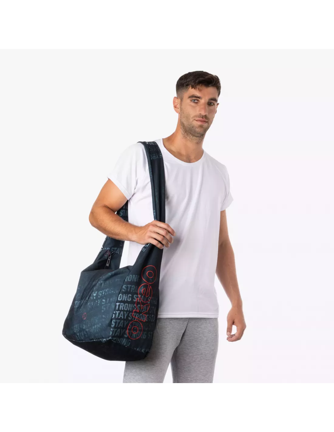 Fabriqué en tissu résistant, il arbore un imprimé vibrant « Stay Strong » sur fond gris, qui transmet énergie et motivation. Léger et facile à transporter grâce à ses poignées robustes, il est parfait pour toutes les occasions sportives.