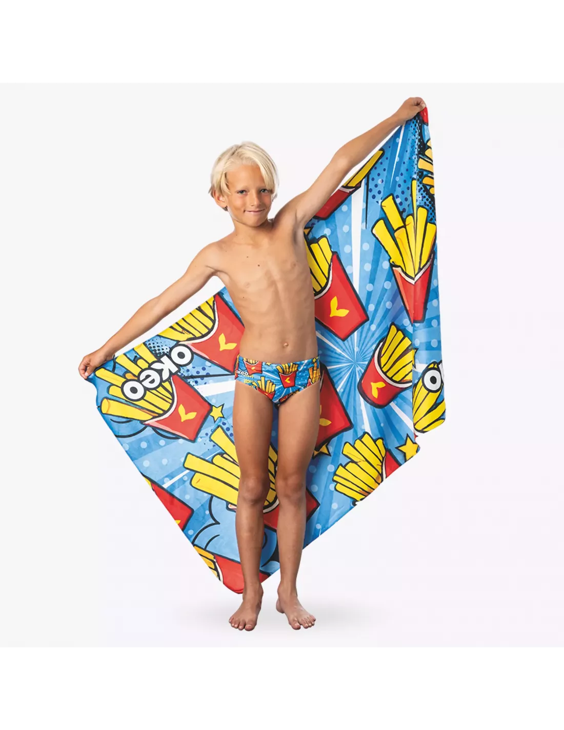 Apportez une touche d'originalité et de couleur à vos journées à la piscine ou à la plage avec CHIPS , la serviette en microfibre de haute qualité au joli motif de frites.