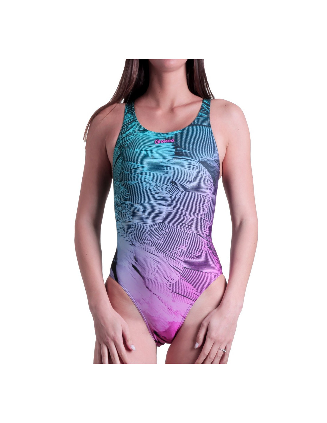 Il costume intero donna MOLVA in tessuto X-Play unisce comfort e resistenza, con spallina larga per massimo sostegno. La fantasia rosa e azzurro e il modello Fun&Fit offrono stile e libertà di movimento in acqua.