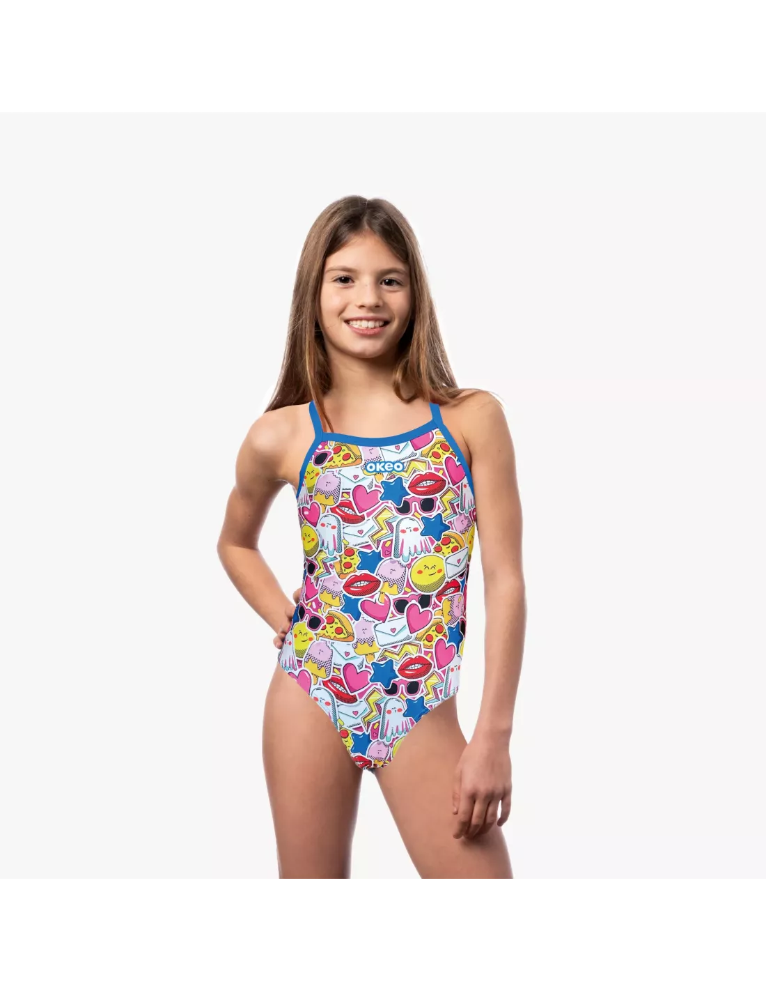 Porta colore e allegria in spiaggia o in piscina con il costume intero VITTORIA, pensato per accompagnare le più piccole nei loro momenti di gioco e divertimento in acqua. La vivace fantasia con disegnini colorati dona un look energico e spensierato, perfetto per l’estate.