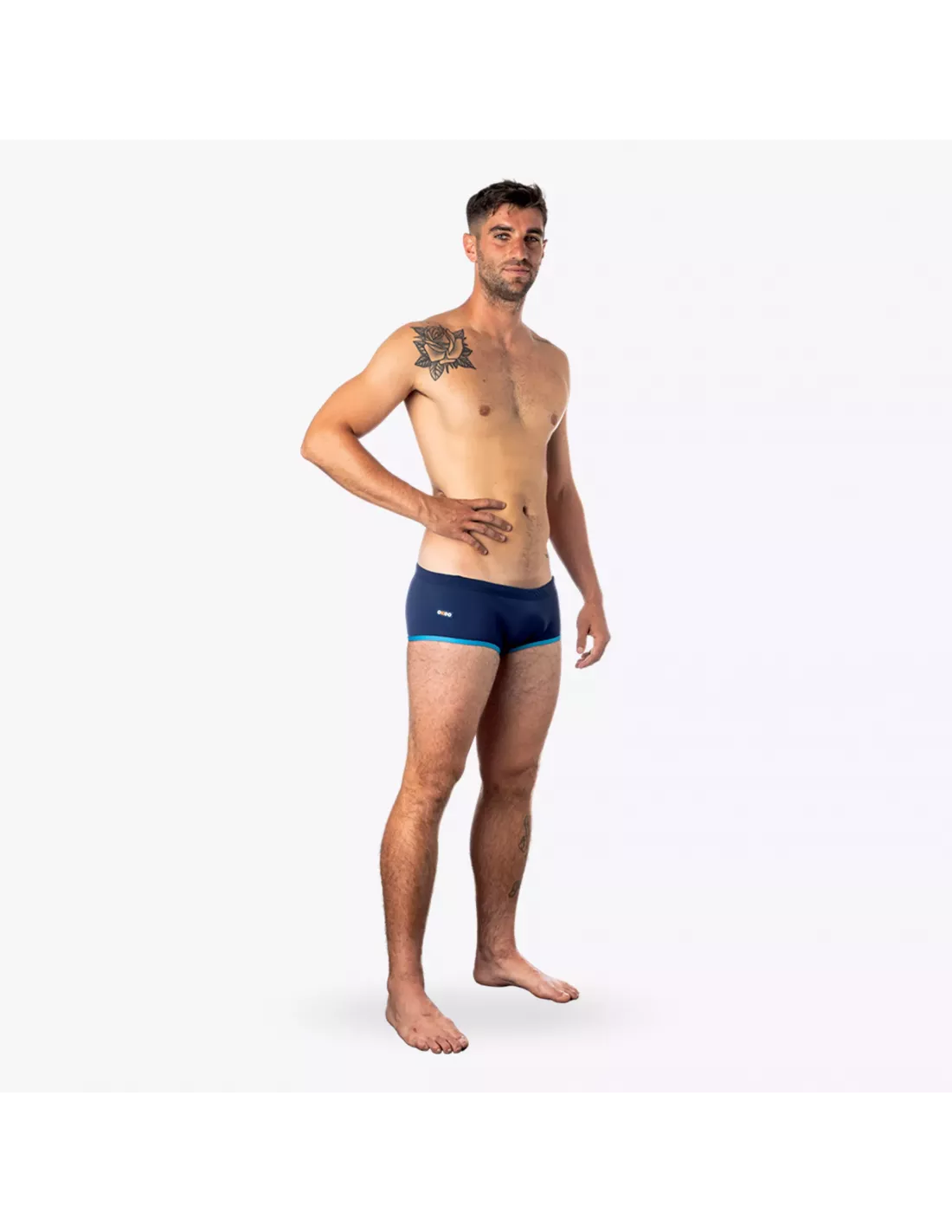 Il costume shorty per il nuoto ROLAND unisce stile e comfort con una fantasia blu e un bordino verde. Realizzato in tessuto Sidney Eco foderato, offre una vestibilità eccellente e un'ottima resistenza per ogni sessione di nuoto.