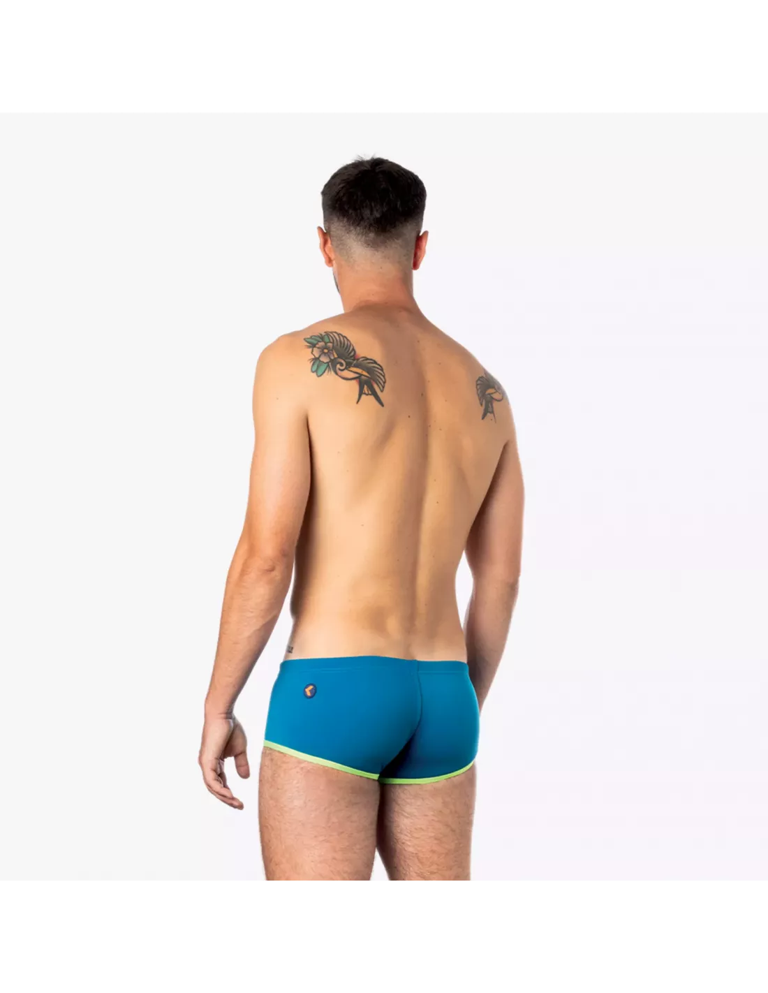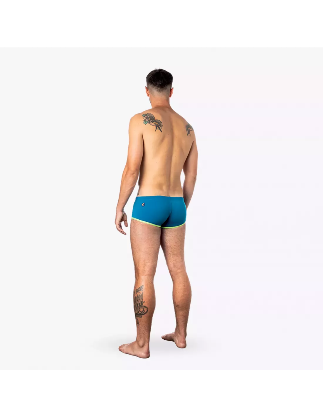 Codice prodotto: A23101CURACAO è un costume shorty in tessuto Sidney Eco, color petrolio finta unita con bordini fluo. Design essenziale e sostenibile, ideale per uno stile sportivo e distintivo.