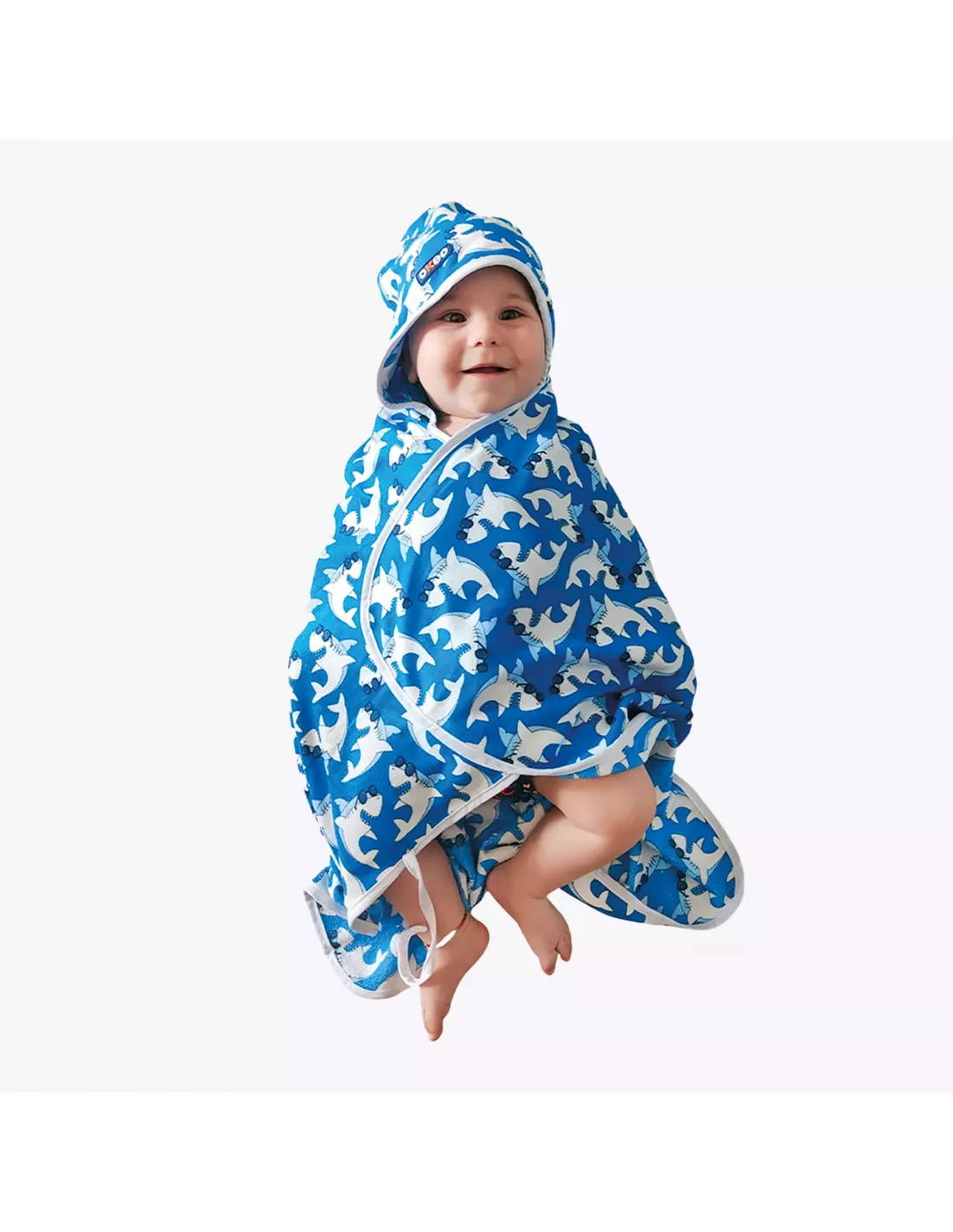 Codice prodotto: AC221EPoncho in microfibra per neonati (0-12 mesi) con simpatica fantasia squaletti, cappuccio e manopola per facilitare l’asciugatura. Morbido, leggero e super assorbente, ideale dopo il bagnetto, in piscina o al mare.